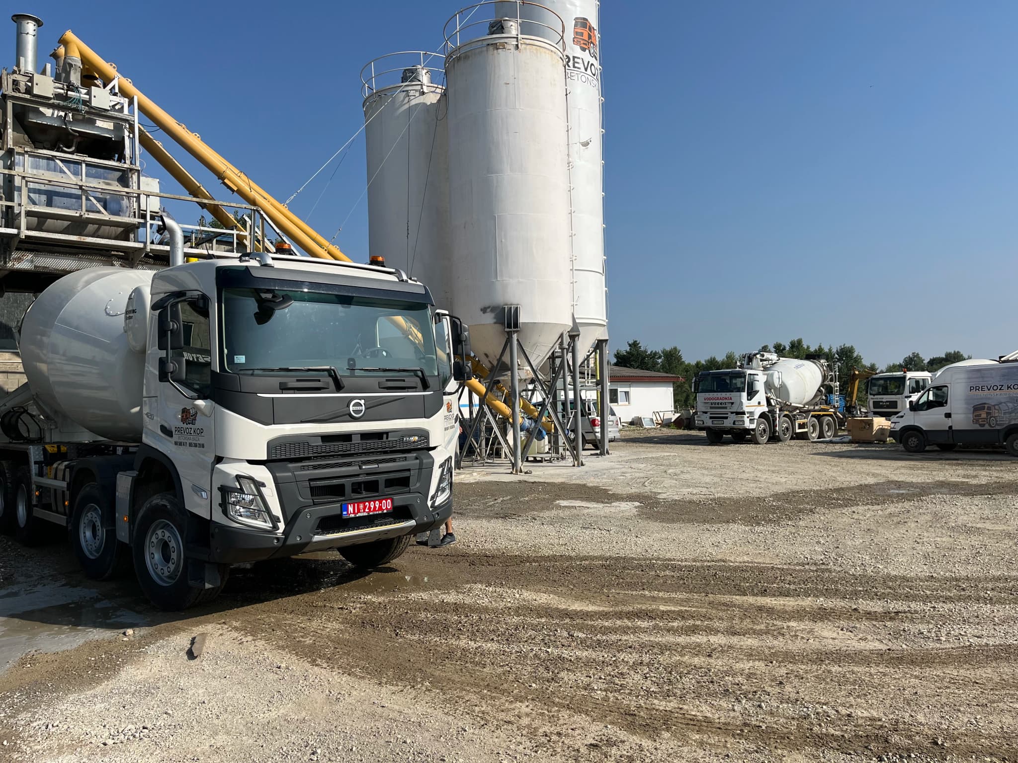 Kratki klipovi iz naše baze i sa gradilišta — miksanje, pumpanje, transport i priprema nasipa.